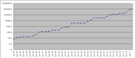 TOP500のTOPを集計してみた 計算機科学 2011.11.282025.11.11 ちょっと興味があって、TOP500の歴代TOPを調べてみた。いろいろな角度からの分析もできるように、TOP500のサイトから過去のXMLのリストをスクリプトでずらっとwgetしてきて、Perlでちょちょいと加工しただけだが、見事に綺麗な指数関数を描いていますね。 縦軸は r-max で 単位はGFLOPS です。 CSVファイルを置いておきますので、トレンド分析の参考などにお使いください。 「top500.csv」をダウンロード