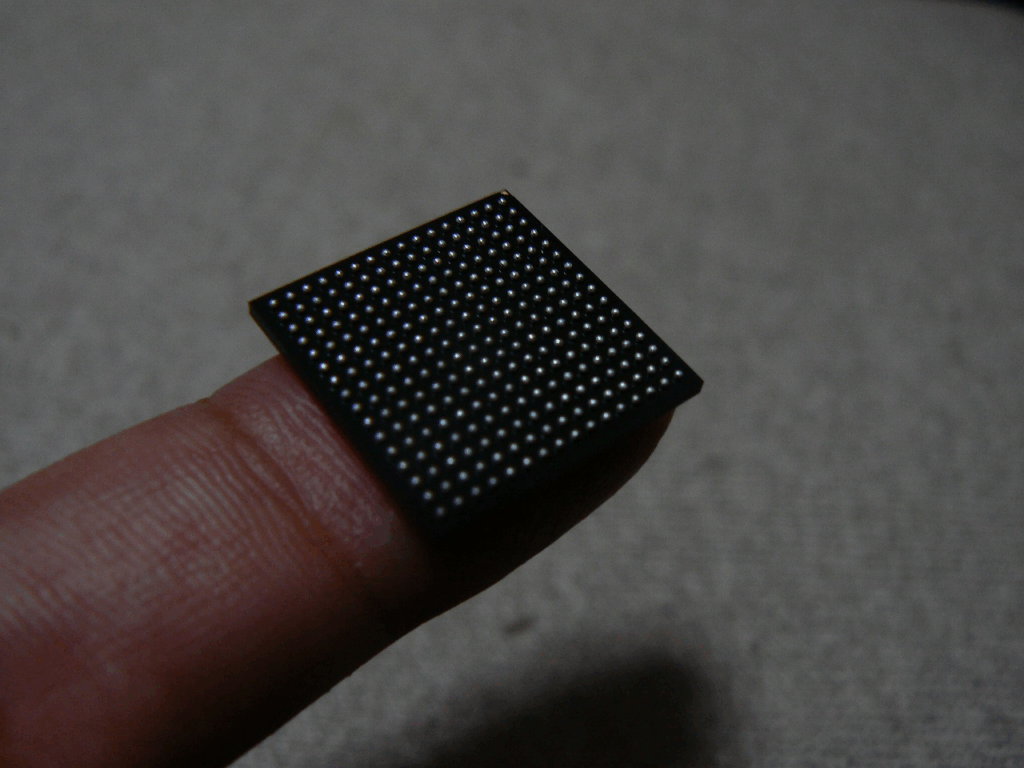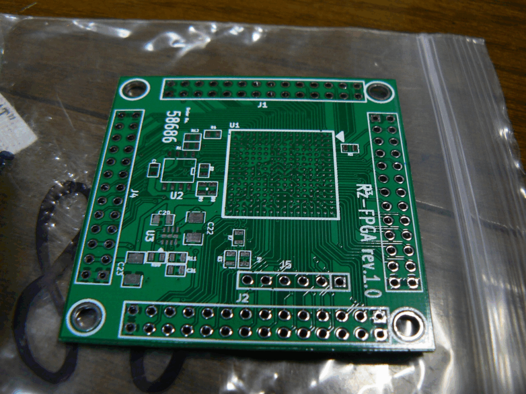 まずは製造から上がってきた基板の表面。BGA部分がワクワクです。