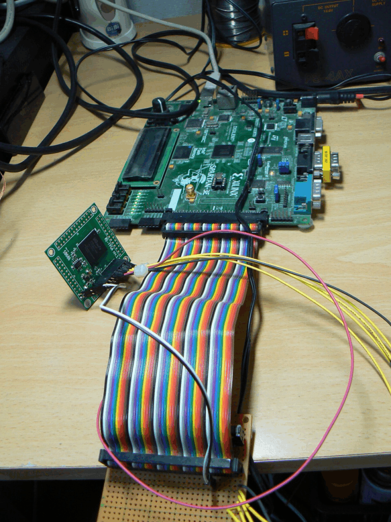 JTAG回路内蔵のSpartan-3Eの評価ボードと繋いでJTAGチェインします。