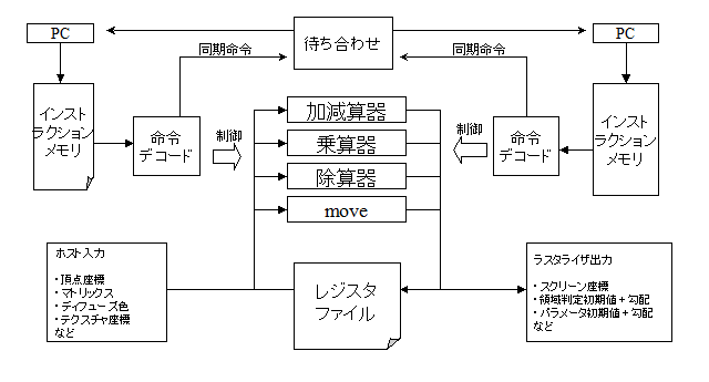 極端な話PCが2個ってのがポイントで、インストラクションは従来っぽい形式で1個だけ持つことも出来るかも。シェーダーの場合究極的にはデバドラのコンパイラが間に入るので(そんなもん作る気は無いが)、ある程度無茶やってもいい気がしている。