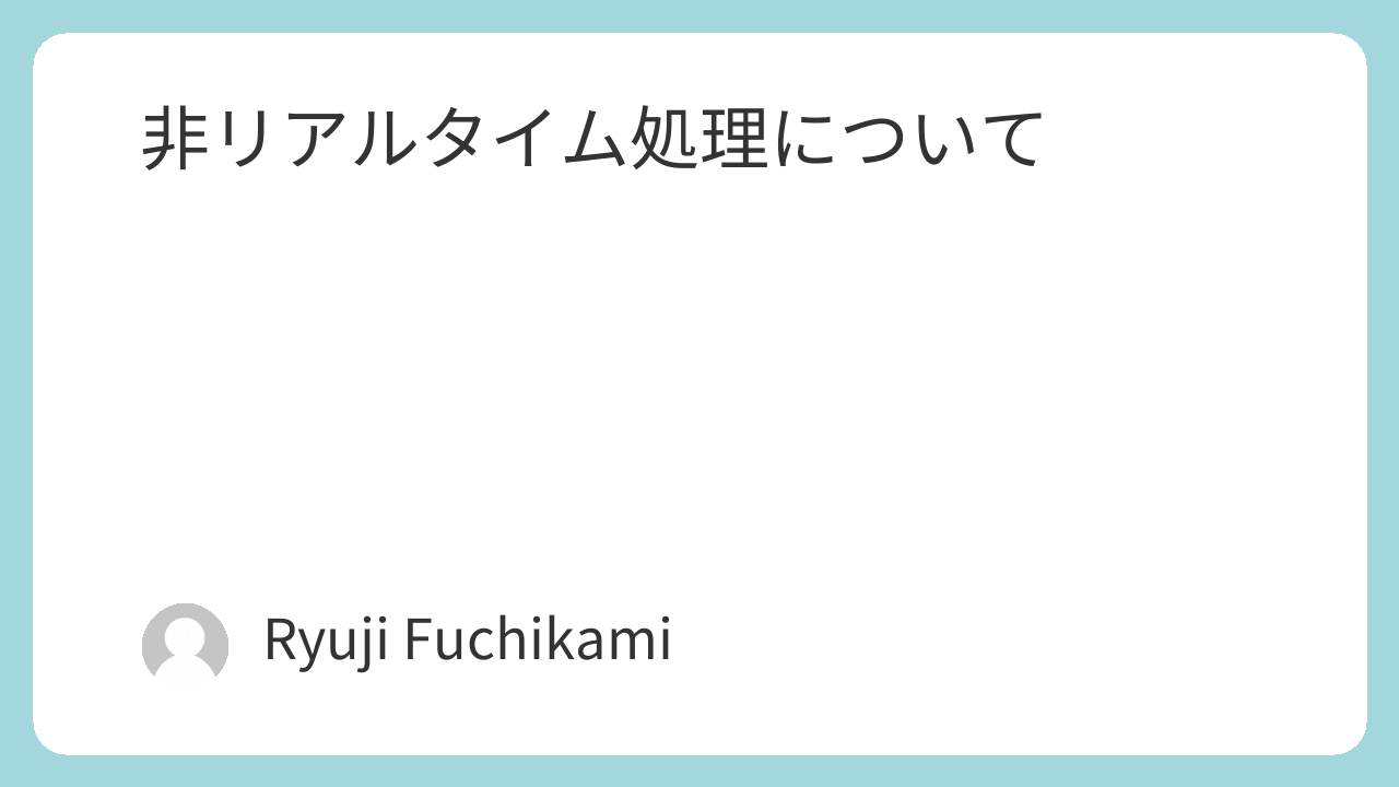 リアルタイム処理には、ハード・リアルタイム、ソフト・リアルタイム、ファーム・リアルタイムなどいくつかカテゴリがあったりしますが、今回はそういう小難しい話はおいておいて、どれにも該当しないリアルタイムじゃないものをざっくり題材にします。