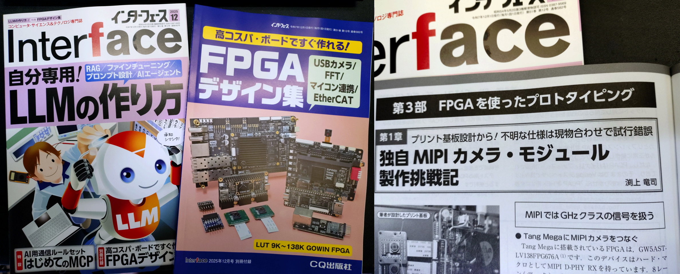 Interface 2025年12月号の別冊付録にて、Tang Mega 138K Pro Dock にラズパイカメラの IMX219 をステレオで取り付ける記事を書きました。