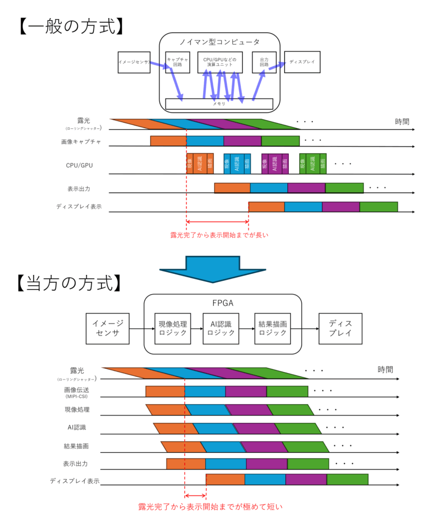 加えてAI認識にはGPUなどで行われる大量の演算を行う計算遅延が発生します。
